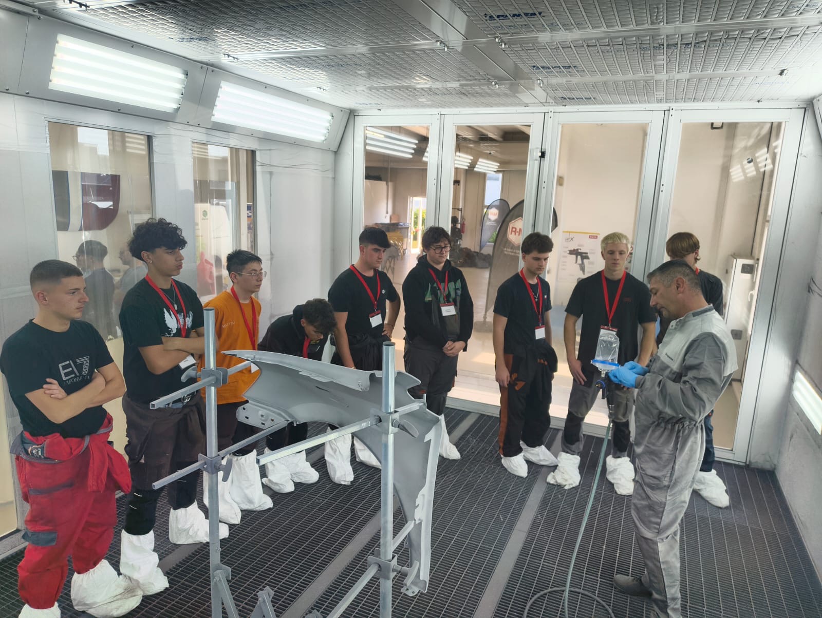 Claudio Borghetto, sempre di R-M paint, ha guidato gli studenti all’interno della cabina di verniciatura, illustrando le operazioni da compiere prima, durante e dopo questa fase e l’utilizzo dell’aerografo.