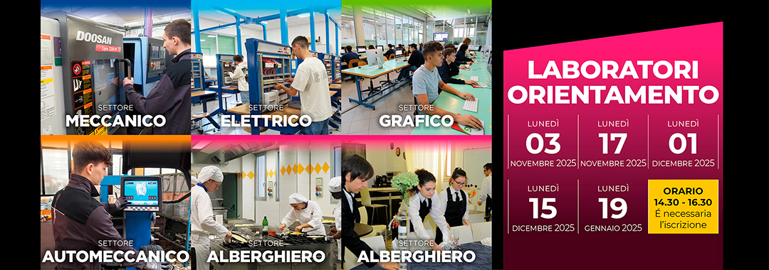 I laboratori si terranno in presenza dalle ore 14.30 alle ore 16.30, in contemporanea per tutti i settori della scuola (meccanico – automeccanico – elettrico – alberghiero [sala e cucina] – grafico), nelle giornate di: