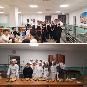 Tutti i pasti sono stati gestiti come delle esercitazioni di laboratorio, con una turnazione in cucina e in sala per la preparazione dei piatti e per il servizio ai tavoli, sotto la guida attenta dei docenti.