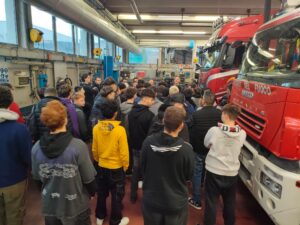 È arrivato poi il momento di visitare l’officina, scoprendo le varie postazioni di lavoro e le riparazioni che si possono eseguire: non soltanto sulle motrici dei camion, ma anche su innumerevoli altri veicoli, tra cui i mezzi di soccorso dei Vigili del Fuoco, i furgoni portavalori, i pulmini attrezzati per il trasporto disabili, i van elettrici adibiti a mezzi per le consegne, …